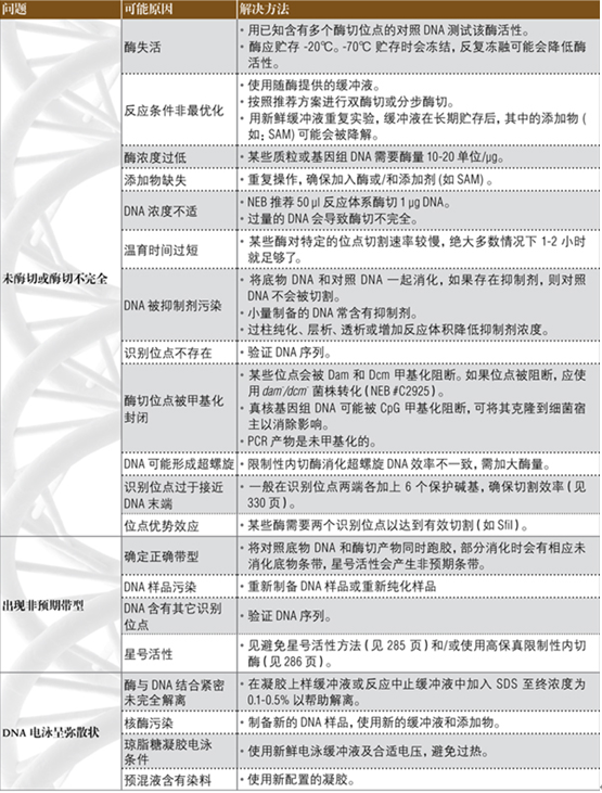 ? 如果對照 DNA 能夠被切割而實驗中的底物 DNA 不能,可以將這兩種 DNA 混合在一起再進行酶切,以檢測實驗用的底物 DNA 中是否存在抑制反應(yīng)的物質(zhì)。如果確實存在某種抑制因子(通常為鹽、EDTA 或酚),則混合之后對照 DNA 也不能被切割。