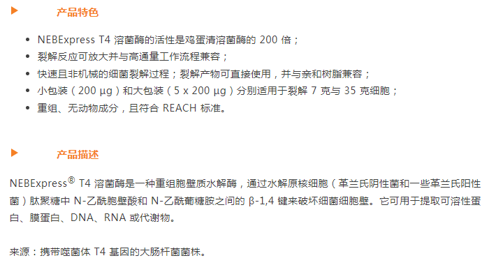 新品發布:NEBExpress? T4 溶菌酶