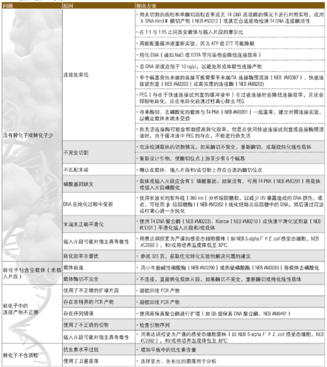 下面的指南可用于解決分子克隆實驗中所出現的問題。關于優化轉化實驗的其它建議參閱 2013﹒2014 商品目錄 323 頁。