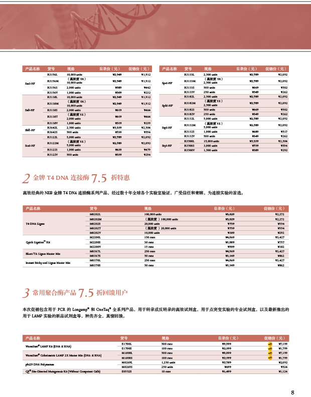 1. 34 種常用 HF? 高保真限制性內(nèi)切酶 7.5 折驚喜促銷(xiāo)