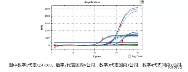 北大某課題組,所用試劑為QST-100和國內B公司、Y公司,使用儀器為 ABI 7500.